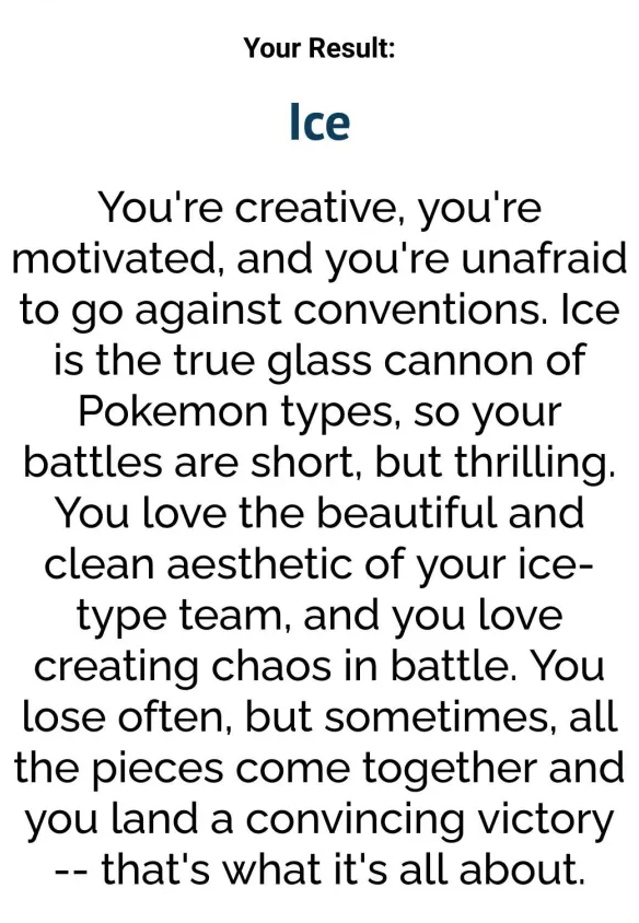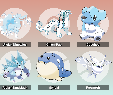 My favorite type is bug, but I'm tentatively fine with ice. I even made an ice-type gym roster!
